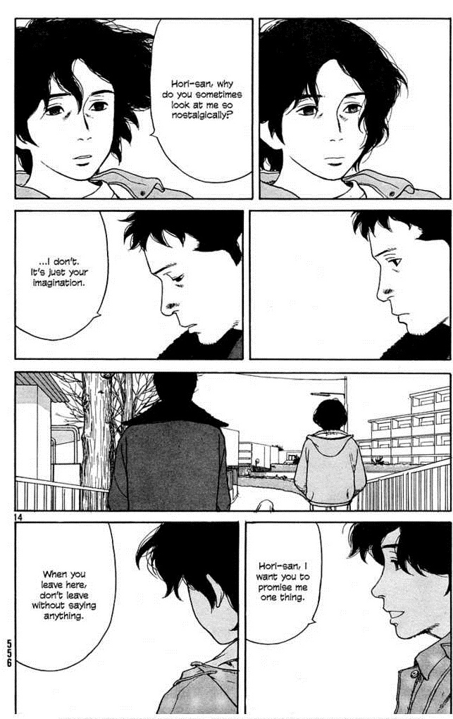 Creio que o personagem mais importante depois de Kanae é Hori. Por isso tenho que falar sobre ele. O enigmático e soturno funcionário de Kanae parece apenas um cara estranho, mas se mostrou muito além disso. Do seu jeito sério e pragmático conseguiu ajudar Kanae em diversos momentos. Eles formariam o “par romântico” do mangá, caso ele se enveredasse por esse rumo, mas a relação deles embora não tivesse uma resolução foi algo memorável, principalmente quando o leitor começa a descobrir elementos de seu passado.