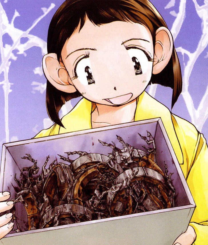 Alien 9 por exemplo, envolve alienígenas parasitas e em Blitz Royale apenas a maldade do ser humano. Essa é a especialidade de Hitoshi Tomizawa, criar contrastes acentuados, notadamente a dicotomia entre “moe” e “gore”, seja na sua temática quanto, principalmente, na sua arte. Claro que num primeiro relance pode ser difícil de se acostumar com a arte dele, mas quando você percebe a intenção dele de criar o contraste intencional, as coisas melhoram.