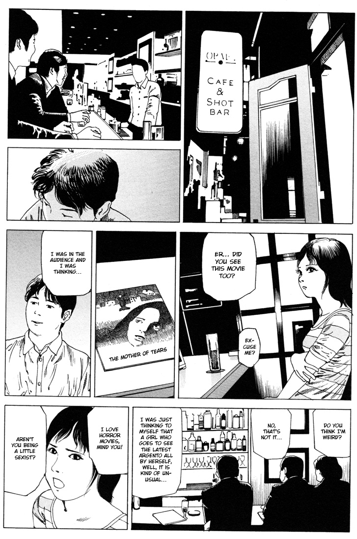 Estas obras curtas são bastante variadas. A primeira é Back from the Front, a qual parece uma obra de Suehiro Maruo, provavelmente Kago se inspirou nele para desenhá-la. Esse conto é sobre um soldado que volta totalmente incapacitado da guerra e a esposa faz ele dele gato e sapato enquanto tenta desesperadamente se satisfazer sexualmente. Nem sei se essa é uma sinopse digna, mas é muito difícil definir esse conto, apenas leiam! Depois temos Tremors, mostrando Kago em sua melhor forma, numa estória onde todo mundo, de forma misteriosa, começa a tremer até desaparecer.