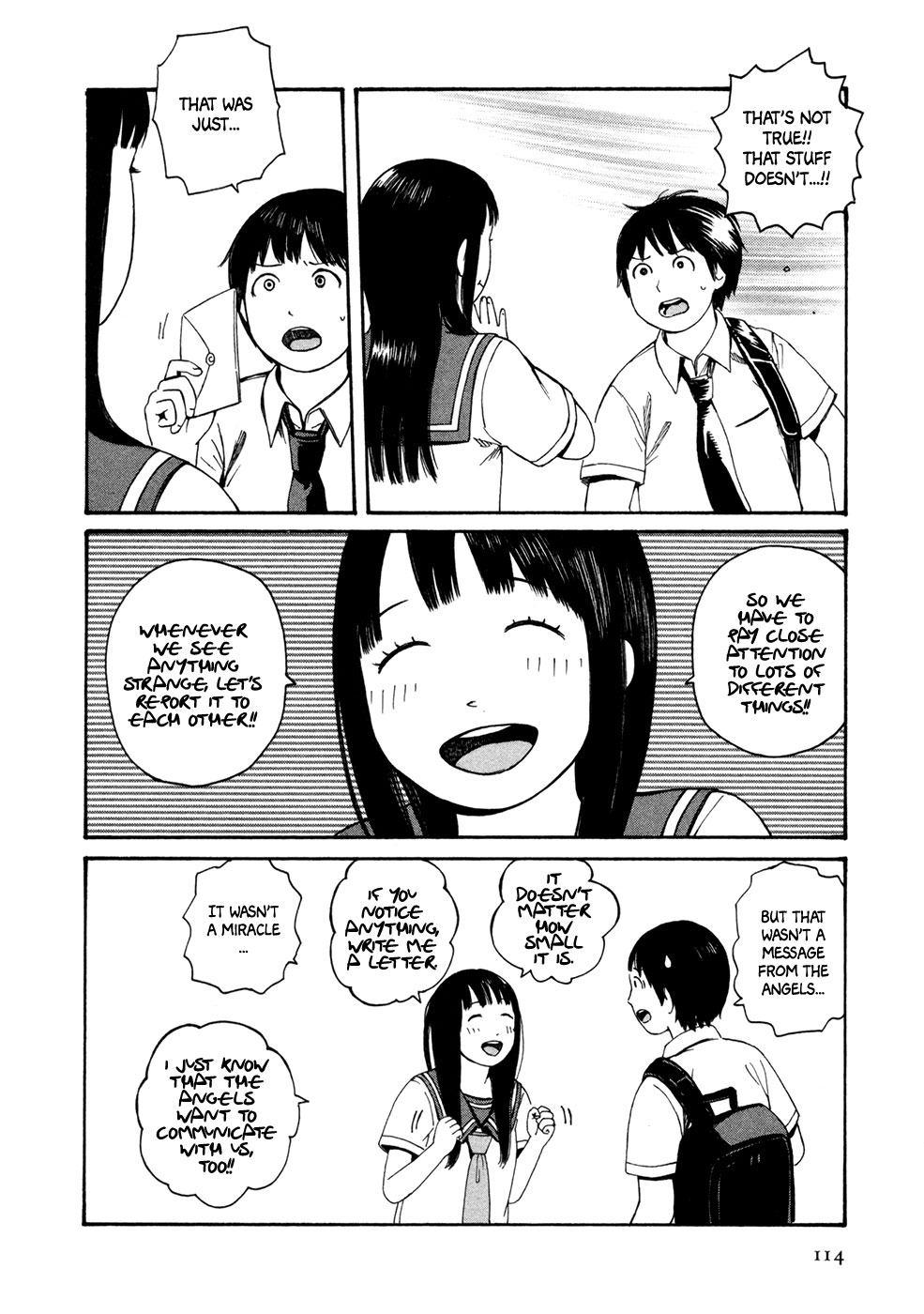 Os dois protagonistas se encontram em um contexto bastante específico, quando ambos vão parar na diretoria por terem escrito uma redação exatamente idêntica, palavra por palavra. Claramente Watase usou seu poder para copiar a redação de Aiba. Os dois são obrigados a reescrevem suas redações e disso se desenvolve uma curiosa relação. Eles vão para a biblioteca reescrever seus textos, conversa vai, conversa vem, Aiba realiza um teste, escreve algo em um papel e pede para Watase escrever também, e ele escreve a mesma coisa, algo sobre o “caminho dos anjos”.