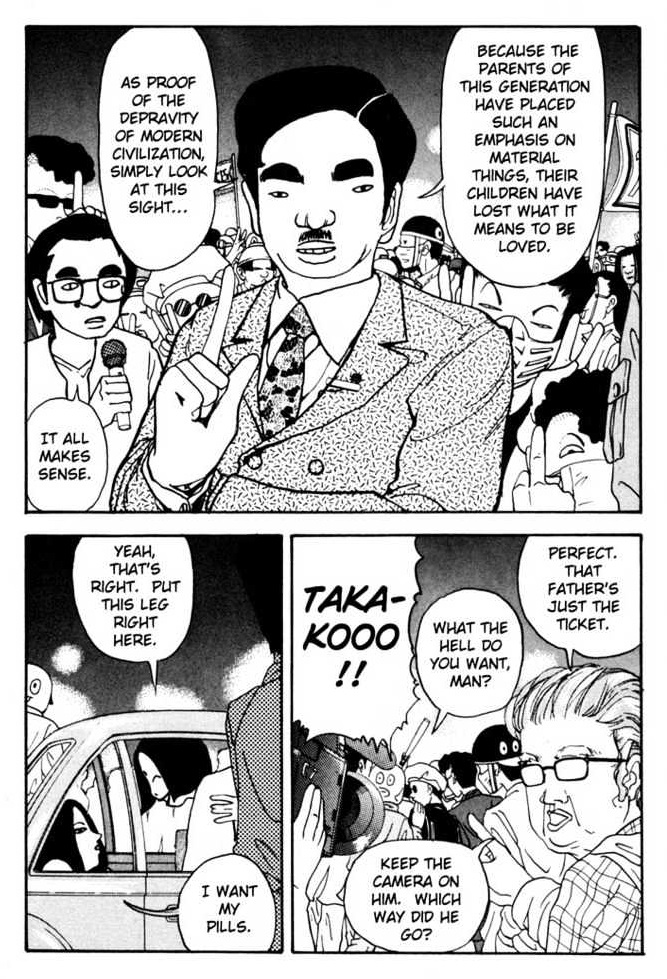 Ocorre que o tom de Arigatou não é sempre sério, ele é permeado por um contínuo e potente humor negro, não sei quanto a vocês, mas isso de certa forma ameniza o conteúdo extremamente pesado desse mangá. Mas esse humor sempre é bem colocado para enfatizar a hipocrisia social da sociedade japonesa dos anos 90, seja a hipocrisia dos professores, das autoridades policiais e até mesmo dos ditos “cidadãos de bem”, que dentro de suas casas se enganam dizendo que a violência crescente é apenas um exagero que não se justifica em uma sociedade com a cultura tão elevada quanto a japonesa.